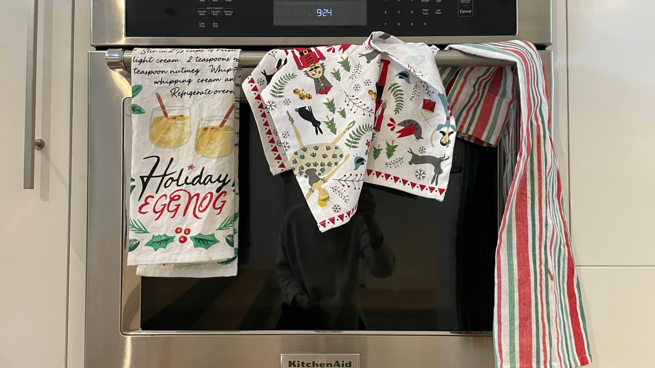 I have very intentionally created a household that has specific towels for every one of those jobs. I have clean, ready-to-use rags under every sink in the house — easy and accessible. I have a drawer of designated swimming towels in the basement. I have microfibre cloths to clean the mirror and buff the sink. I have absorbent towels to dry the dishes, so that the Christmas tea towels can remain perfectly positioned to live out the fantasy Christmas of my dreams. But no one gives a shit. Except me.